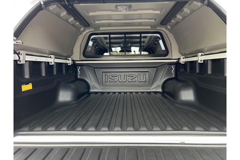 GREAT SAVING! READY TO GO WITH CANOPY AND TOW BAR! Pre reg Truck with Delivery Miles Only, New spec V Cross Automatic in Splash White with Fitted Aeroklass Commercial Canopy, Privacy Glass, Tow Bar with 50mm Ball and 13 Pin Electrics, Under Rail Bed Liner. Unused Truck with Delivery Miles only and Isuzu Warranty Package to 29 June 2030 or 125,000 Miles whichever soonest