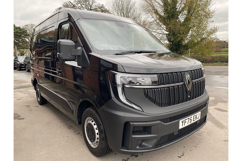 Delivery Miles 75 Reg New Shape 3.5 Tonne Master MWB MM35 L2 H2 dci130 in Pearl Black Metallic Paint, Spec Includes Air Conditioning, Cruise Control, Rear Parking Sensors, Connected Navigation Apple Car Ply and Andriod Auto. Fully Ply Lined to Cargo Area, In stock and ready to go.